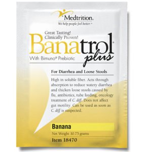 Banatrol® Plus is high in pectin, a soluble fiber that acts through absorption to reduce watery diarrhea8 to promote normalization of colon fluid composition. Soluble fiber is gel-like and helps thicken stool consistency but does not promote hard stools and does not slow gut motility. Each dose of Banatrol Plus contains 2.75 g of Bimuno®, a prebiotic Trans-galactooligosaccharide that is a food source for the beneficial bacteria that reside in the colon or gut. It is not destroyed or digested in the stomach or small intestine, so it reaches the colon where it feeds the bacteria. Because of its special patented process, the prebiotic trans-galactooligosaccharide is a uniquely sized molecule that can be digested directly by only the “good” bacteria in the gut. Banatrol Plus is specifically formulated to provide the nutrients for the dietary management of diarrhea without medication.